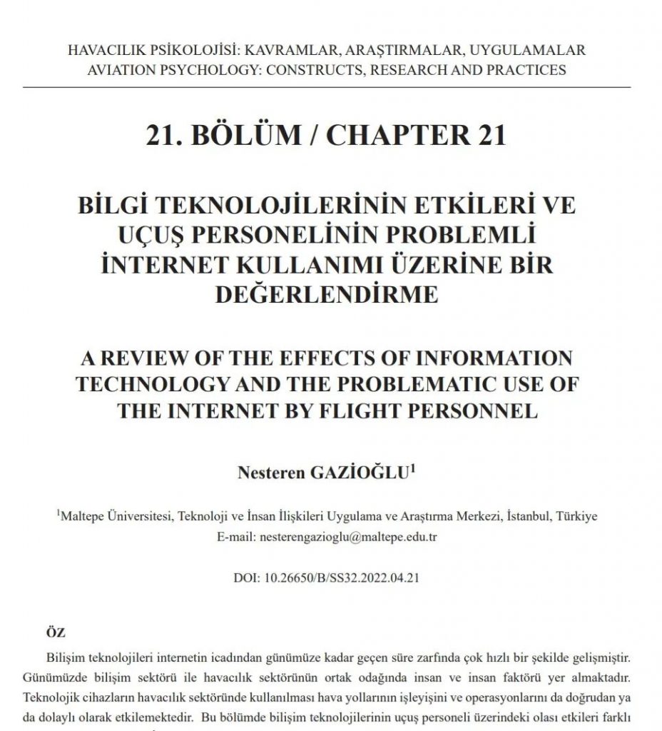 Gazioğlu N. (2022). Bilgi Teknolojilerinin Etkileri ve Uçuş Personelinin Problemli İnternet Kullanımı Üzerine Bir Değerlendirme. İçinde Ünsal, P., Çeken, S.(Eds), Havacılık Psikolojisi: Kavramlar, Araştırmalar, Uygulamalar (ss.605- 629). İstanbul Üniversitesi Yayınevi. https://doi.org/10.26650/B/SS32.2022.04.21